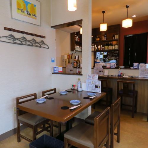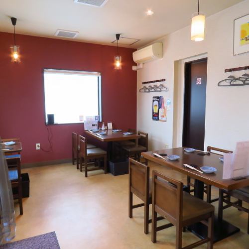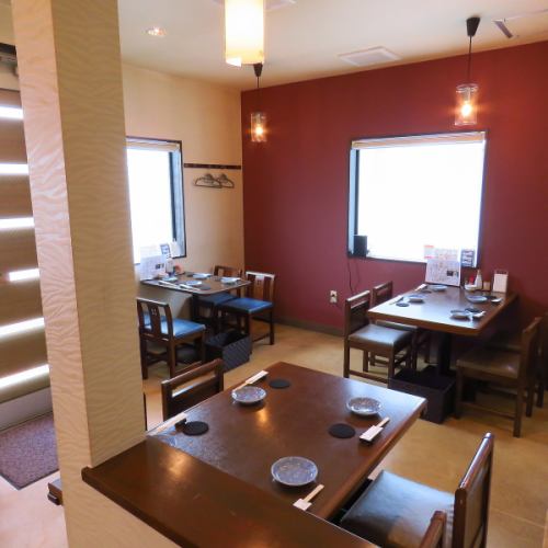 【テーブル席:全12席】席の間隔が広く、どのお席もゆったりとお寛ぎいただけるテーブル席は4名席×3卓ご用意しております。ご友人同士や会社仲間とのご利用から、ベビーカーをご利用のお子様連れまで多彩なシーンでお楽しみいただけます。